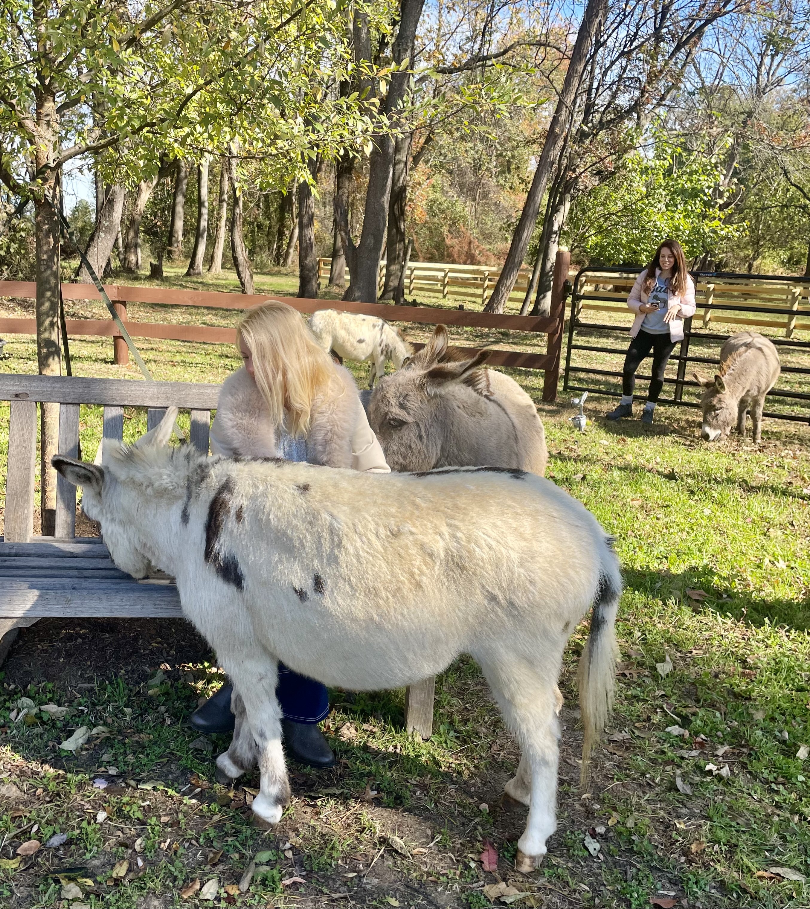 Finally, in October, my sister and I joined a grief circle led by a Foreign Service friend of mine. JS and I began our Foreign Service careers in the same orientation class years ago. During her second tour, she experienced three devastating personal losses in a short period of time. After moving through the initial stages of grief, she sought more ways to live with and accept the losses, from running a marathon to writing a book, and then helping others by becoming a certified yoga and grief coach. We joined her and four others who were experiencing loss at a small farm near Purcellville, Virginia. We meditated, shared our grief stories, and then took part in equine therapy with several sweet and friendly rescue donkeys.