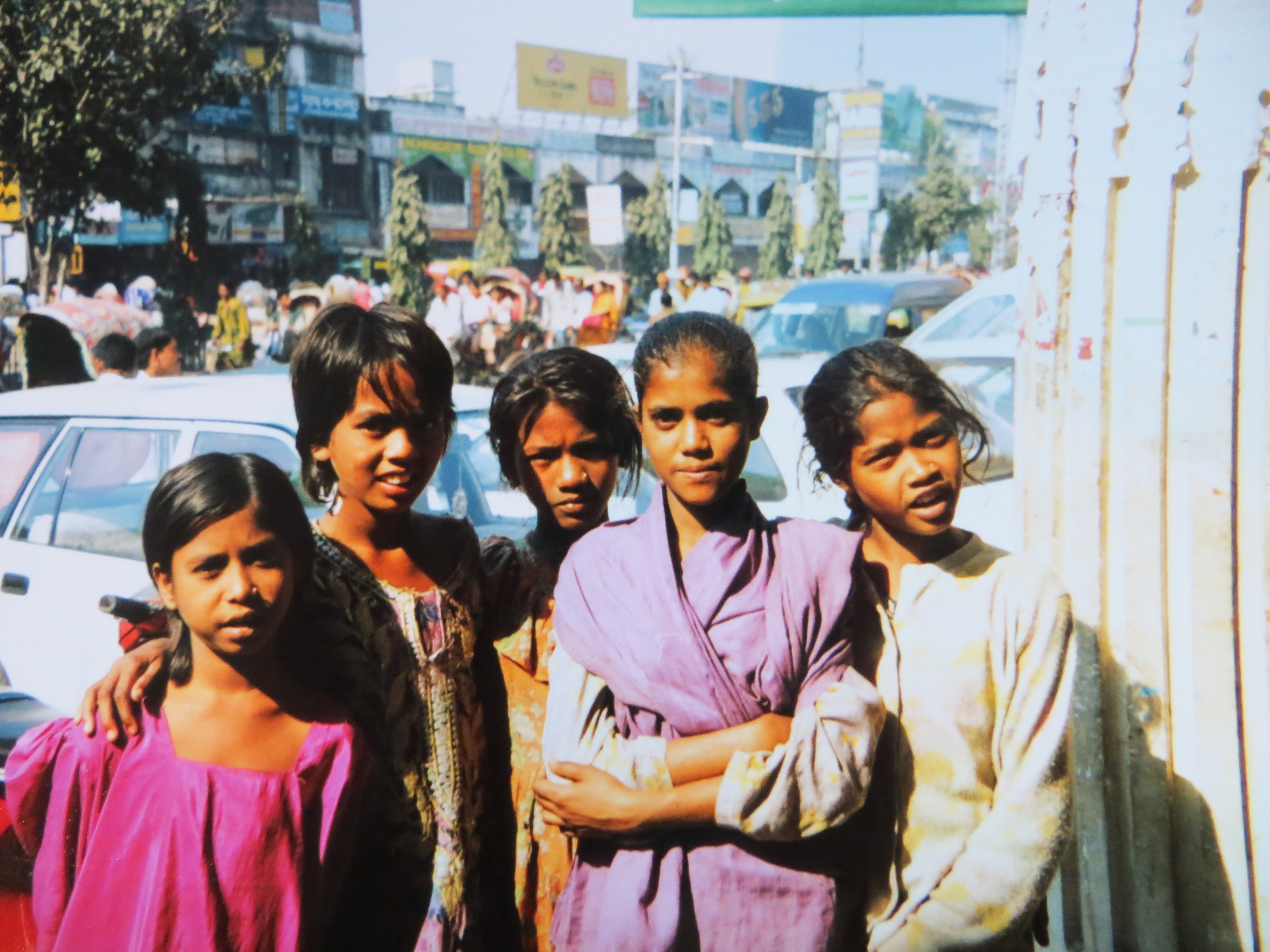 I recall I wanted to get out and see a market to buy something “Bangladeshi.” The guesthouse owner flagged down and spoke firmly with a passing auto-rickshaw driver. The owner assured me this driver knew where we were going. About 30 minutes later, it was clear to me that the driver had NO IDEA where we were going. He had driven onto a very narrow road, which barely fit two auto rickshaws side by side. He could speak no English and I no Bengali. I hopelessly blah-blah-blahed the name of the market to to him as he stared at me blankly. Suddenly, a young man approached us, a university student, who spoke English. He spoke with both of us and we were soon on our way to the market. Once there the driver apparently wanted more money than had been initially agreed upon at the guesthouse (where the owner had counseled me to pay a certain amount and NO MORE). I tried to give him the agreed upon price and he refused. He shouted and gestured at me. I blah-blah-blahed back. I put the money on the driver’s seat as he would not take it from my hands. He kept yelling at me as I started to back away. A group of five girls swept up to the vehicle, chattering in broken English, “Miss, Miss, you shopping?” and whisked me away with them. The market was a wash as there were no Bangladeshi handicrafts to speak of and the stall the girls took me to was full of t-shirts sporting Titanic and Michael Jordan themes. But I remember the girls.
