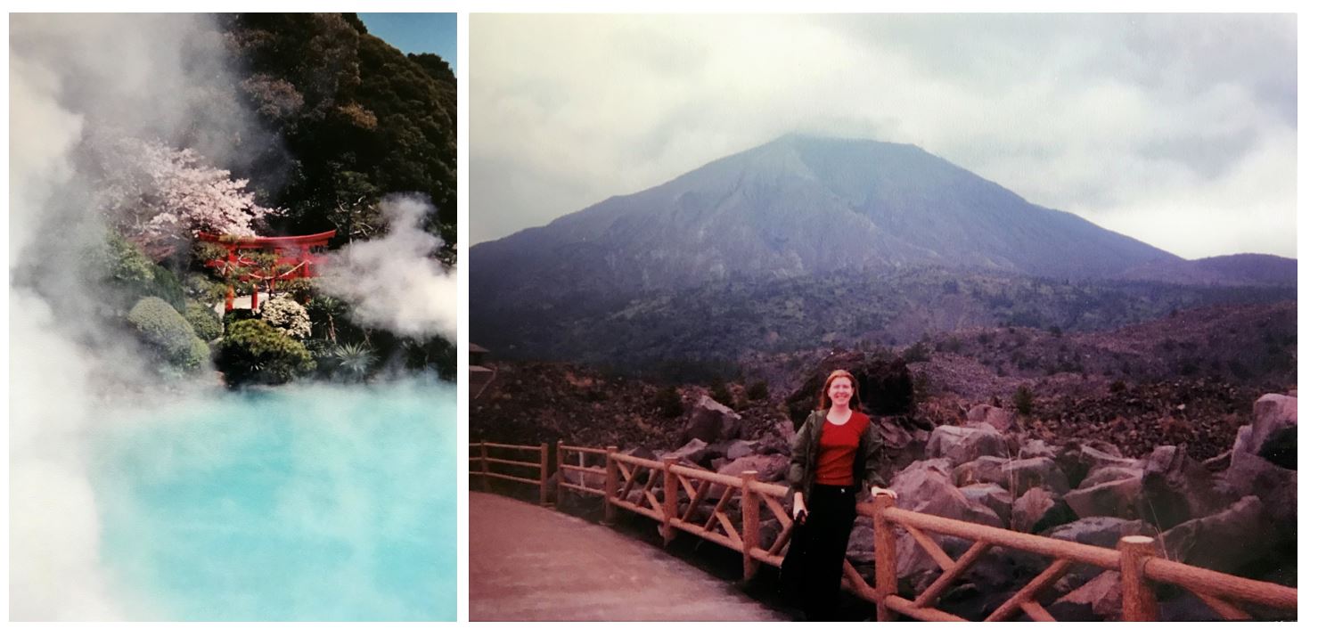 The Kyushu Hot Springs Tour. While in Japan, I came to really love the hot springs or onsen. I had been introduced to the concept while teaching English in Seoul, South Korea, where I lived on the top floor of a four story walk-up. The building, painted a deep purple, and over a shoe store, had terrible plumbing, and the large, cheerless, bathroom, I shared with two roommates was not really up to task. But down the street, just a few blocks away, was a traditional public bathhouse. It was here where I 3-4 times a week (in conjunction with the shower at my gym) came to suds up alongside other neighborhood women. I was quite thrilled when I moved to Kogushi and learned that just one town over was the famous Kawata Onsen. But I was not satisfied to just head over there to fulfill my onsen interests, I started to motorbike around the district and prefecture to other hot springs and to seek them out in other locations. There were indoor onsens and outdoor onsens. Modern onsens and traditional onsens. Obscure onsens and famous onsens. And onsens that offered unique experiences such as varying temperatures, an electric bath (this was quite literally shocking and made me really uncomfortable), and more. I never did get up to Hokkaido or northern Honshu (known as “snow country”) for an au naturel soak surrounded by snow and mischievous monkeys, but I did visit the famous Tamatsukuri Onsen in Shimane prefecture and the Dogo Onsen Honkan in Ehime Prefecture, reportedly Japan’s oldest hot springs resort. Thus, in my third year in Japan, I made it my mission to visit some of Kyushu’s most famous.
