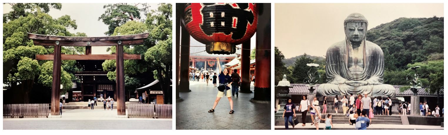 Tokyo and its environs. Between my first and second years in Japan, I signed up to take part in a two week Japanese course through the Tokyo YMCA. The YMCA set up a homestay for me with a family in Yokohama. I remember almost nothing from the Japanese course itself — I don’t think it did much for my Japanese — it was more the being in Tokyo, about as far away in Japan from Kogushi as I could get: the opposite side of the country and a megapolis compared to a village. What sticks out the most from that trip was my homestay family — a two parent family, with dedicated working dad, a stay at home mom, two elementary aged kids. What made them so memorable was their keen dedication to Disney. The had annual passes to Tokyo Disneyland, had Disney decor around their home, and they named their two girls after Disney characters. I also remember meeting up with Miyako, a young mother who had befriended me in Kogushi when I entered a local government building seeking information on town recycling. No one could help me, but her husband called her — with her excellent English — to assist. We started to hang out and I even briefly joined her husband’s band. I sang the Beatles songs at a wedding. Miyako was back in Tokyo with her son and we went for a cruise on the Sumida river. Then I visited Senso Temple, Tokyo’s oldest. It is a magnificent temple of bright, colorful red buildings, including a pagoda, and is one of the city’s most significant — though anyone can tell this from reading online. I do not actually remember. What I do recall is demonstrating a high level of patience waiting by the massive red paper lantern at the “Thunder Gate” until there were few people so I could jump in and get a silly photo of me below it.