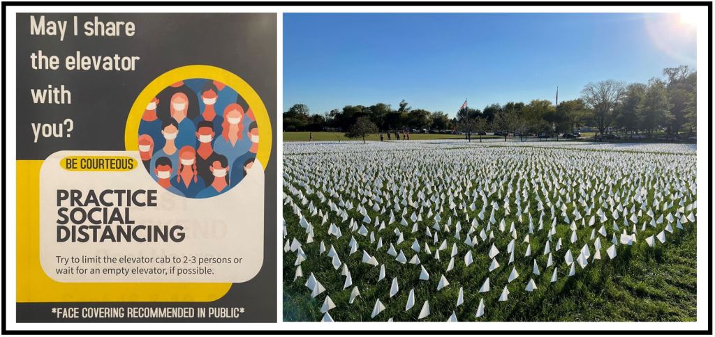 Honestly, I am not quite ready to travel again. With C yet unvaccinated and rules for who can go where and what they need to test for or prove beforehand change regularly, even travel planning does not yet again give me the joy it once did. Our home leave was spent in Jacksonville, Florida, when the city became the epicenter of the surge in the Delta variant. C started school in northern Virginia in this climate. I am grateful my daughter can attend school in person, but the daily survey sent to us by text and email is a stark and regular reminder that the pandemic is still very much here. As the US deaths from COVID-19 approached 600,000 a friend of mine in Michigan reached out with a request: a friend of a friend wanted a flag placed in memory of a loved one in an art installation on the Washington Mall. Would I be able to assist? An hour later I found myself kneeling in the grass on the Mall surrounded by the sight and sounds of hundreds of thousands of white flags as I placed one more into the soft ground.