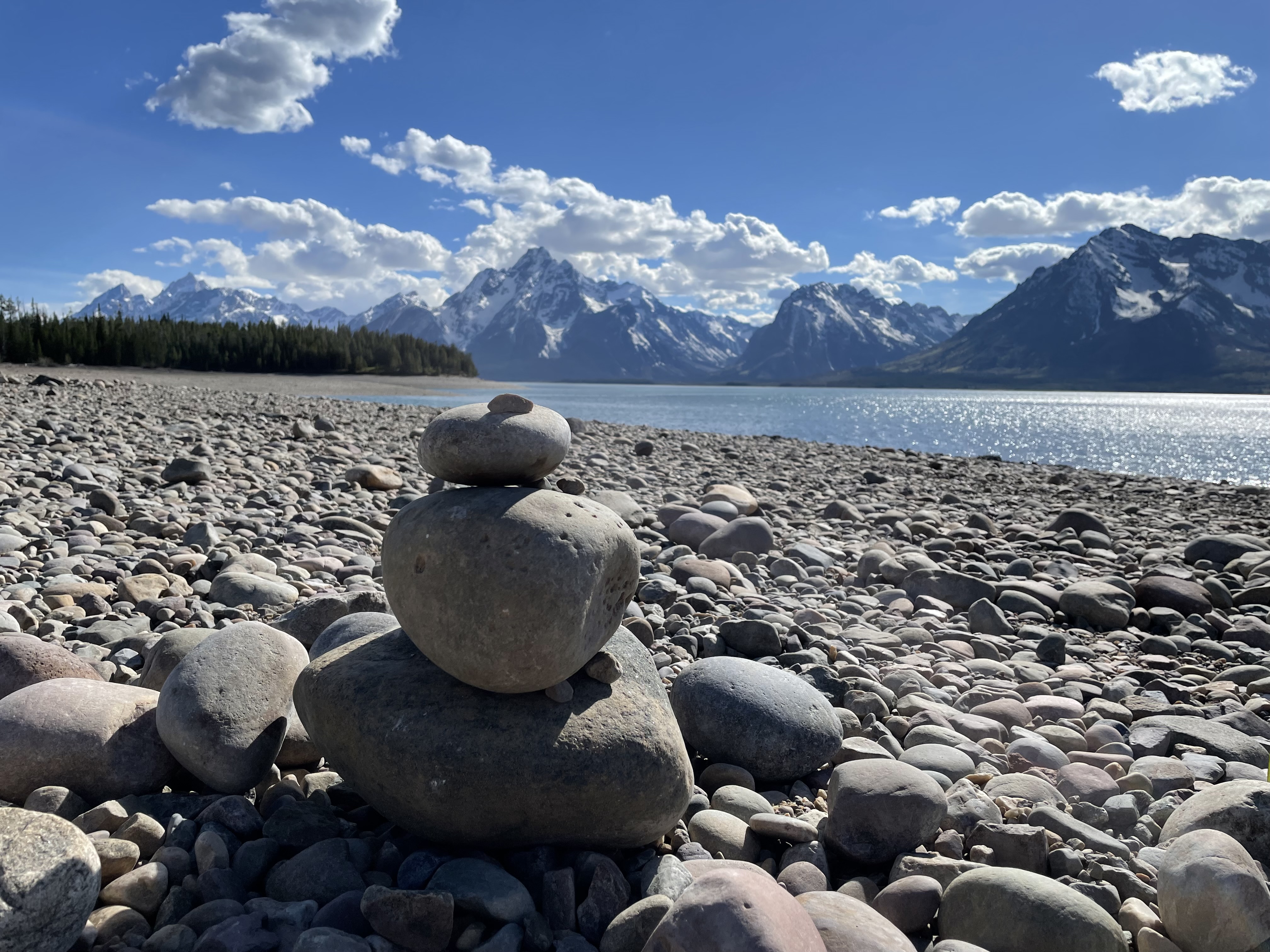 On our second day in the Grand Tetons we drove down to the Jenny Lake loop. Here we got up much closer to the mountains and lakes. We stopped briefly at Jenny Lake Lodge to find workers from the Teton Raptor Center giving an educational talk on the lawn with some of their rehabilitated birds. At one of the lake overlooks we encountered the first of very many rather forward chipmunks. I have certainly seen chipmunks before on the East coast, but in Grand Teton and Yellowstone, I saw them with great regularity. And I am a fan of chipmunks. Who isn’t?