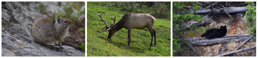 In the valley itself, there were many bison herds, full of young calves, grazing near the road and occasionally crossing it. We also saw pronghorn deer, ground squirrels, a bald eagle, and a sandhill crane. The animals certainly did not mind the cooler temperatures and misting rain.