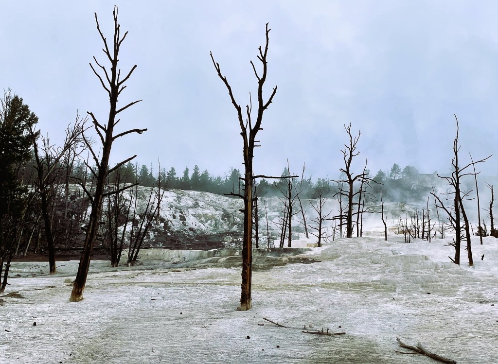 With our third day in the park predicted to have rain, we opted to spend that morning in the Lamar Valley, known for having some of the best opportunities for wildlife spotting. This reminded me so much of self drive safaris in Africa – all safaris are a matter of luck, but in self driving you do not even have the upper hand of experienced guides and trackers. We sure did luck out that day as we came across a bottleneck along the road just before Tower Falls, where a mother black bear had been spotted lying beneath a large pine where her two cubs were safely ensconced. We could barely make out any of them, but a fellow visitor, who happened to be a retired school teacher with a powerful scope, was kindly letting everyone take a look at the bears from a safe distance.