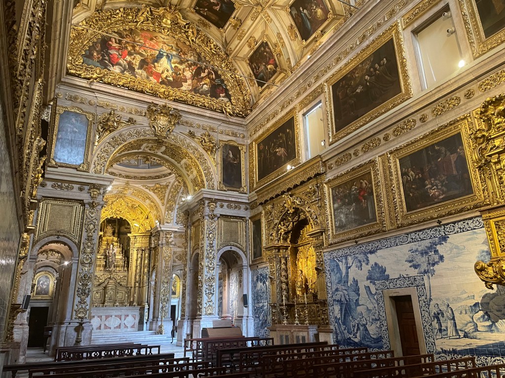 We hopped on the 15E tram to head back down to Commerce Square where we did the 20-minute Virtual Reality experience at the Lisbon Story Center. With that it feels like you are flying over the key locations of Lisbon, Sintra, and Cascais, which was pretty fun since we had just visited nearly all of those sites recently. We got lunch and then rounded out our day with a visit to the National Tile Museum. The glazed ceramic tiles, or azulejos, can be found all over Portugal, in and on public buildings and private homes. The National Tile Museum incorporates the 16th century Madre de Deus Convent. It’s church is an extravagant display of carved exotic wood, golden framed paintings, and exquisite tile work. It is overwhelming and stunning. When we lucky the chapel was open during our visit.