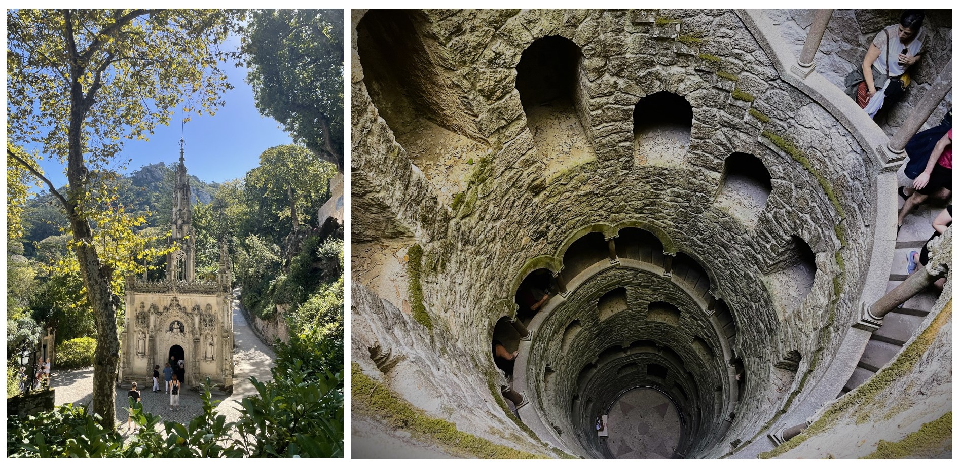 The Grand Real Villa Italia Hotel (quite a name, don’t you think?) could not accommodate an early check-in, so we placed our luggage with the concierge and then took another Uber to the Quinta de Regaleira in Sintra. I had only just read about this destination the day before; it had, for some reason, not been on my radar. However, I am very glad we were able to visit this gorgeous estate. There is a 19th century Manueline villa (late Gothic) where guests can see some of the rooms, but the highlight of the visit are the extensive extraordinary gardens full of surprises like towers and grottoes, benches, underground passageways, and water features. The most popular is the Initiation Well, a 27-meter deep spiral passageway to subterranean tunnels that immediately reminded me of one of my favorite movies, Pan’s Labyrinth.