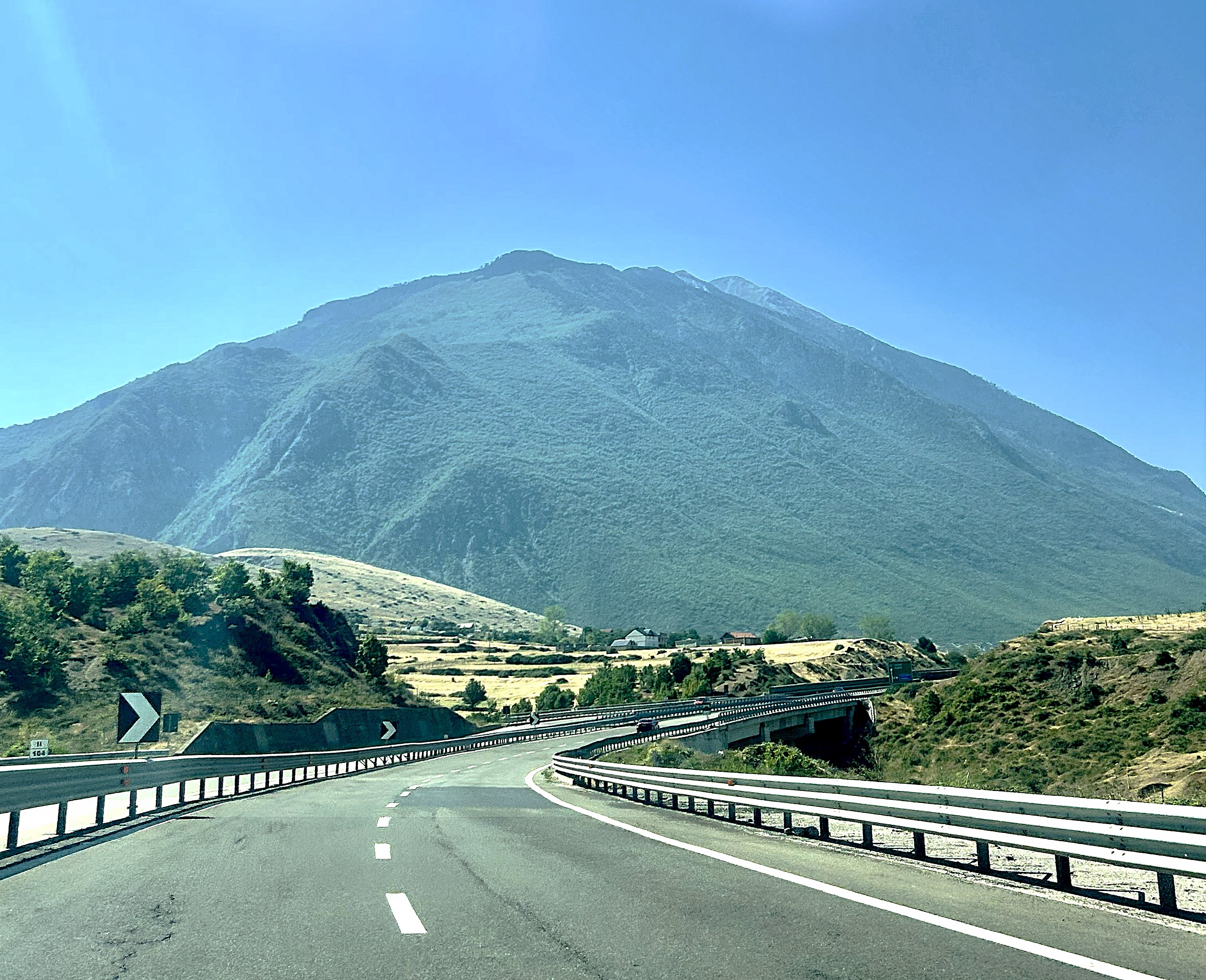 We left Peja and headed east toward Kosovo’s capital, Pristina — trading the mountains that had framed so much of our trip for rolling hills. Pristina sits in a flat valley, and at one point along the highway encircling the city, we caught a sweeping view of the entire capital spread out below us. It felt almost strange to see such a wide, open landscape after so many days of winding mountain roads.