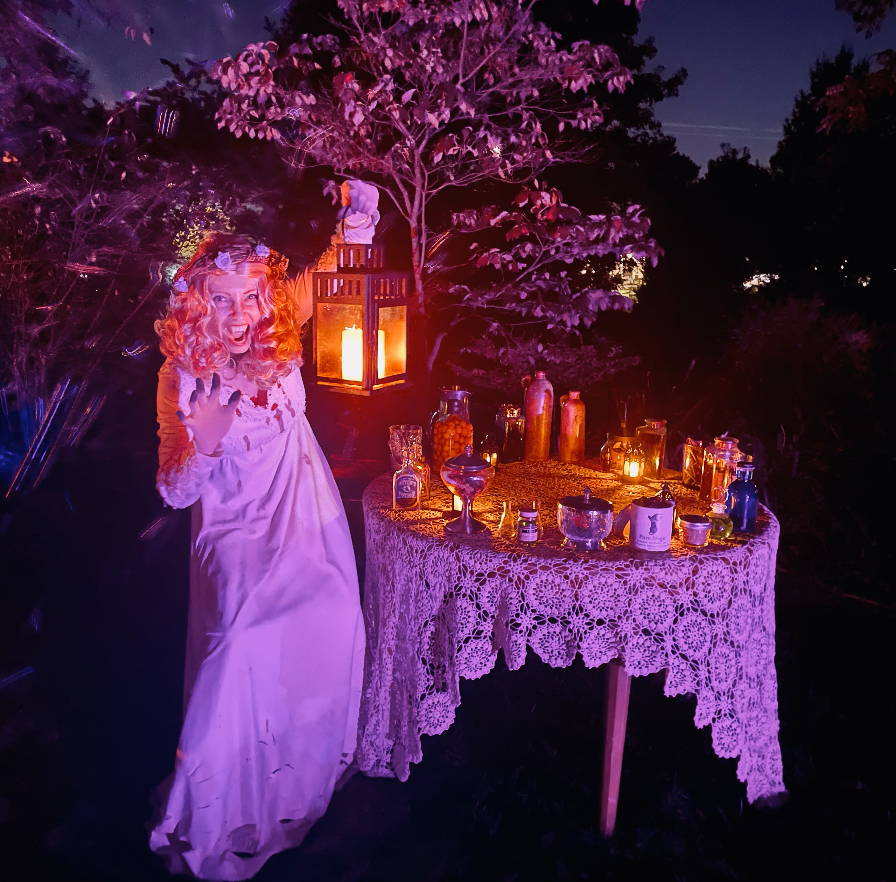 We next attended another of my sister’s interactive theatrical performances by Naut Human Productions at Dodona Manor in Leesburg, Virginia. Following last October’s Halloween-themed Dracula, this year’s spooky offering was the Frankenstein Experience. Unlike in past years, when she has usually had a more glamorous role, this time she appeared as Igor—the first of Dr. Frankenstein’s attempts to bring a human back to life using rat DNA—and she was far more frightening. There were plenty of jump scares and screams throughout, and Igor was undoubtedly the star of the evening.