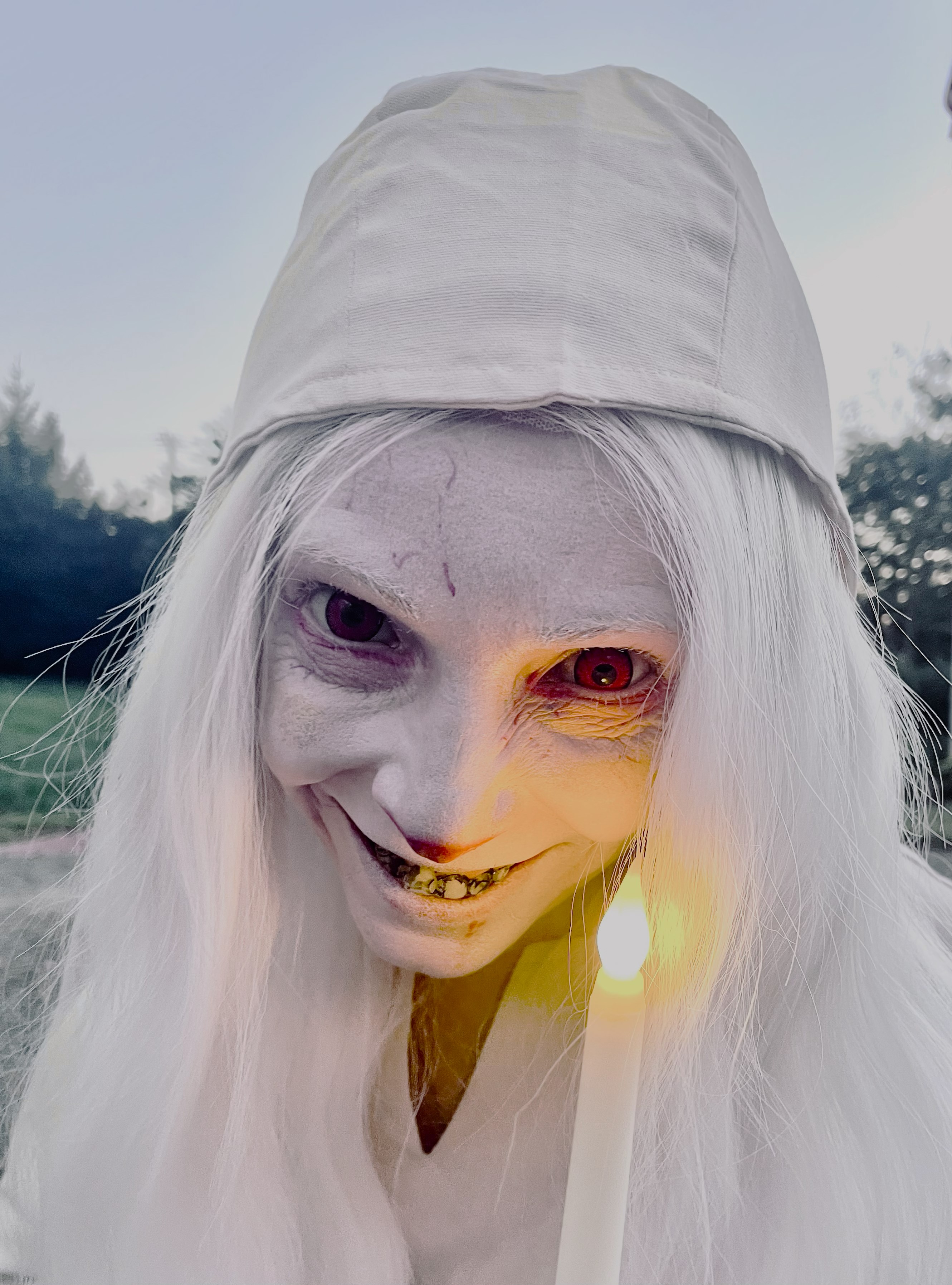 We next attended another of my sister’s interactive theatrical performances by Naut Human Productions at Dodona Manor in Leesburg, Virginia. Following last October’s Halloween-themed Dracula, this year’s spooky offering was the Frankenstein Experience. Unlike in past years, when she has usually had a more glamorous role, this time she appeared as Igor—the first of Dr. Frankenstein’s attempts to bring a human back to life using rat DNA—and she was far more frightening. There were plenty of jump scares and screams throughout, and Igor was undoubtedly the star of the evening.
